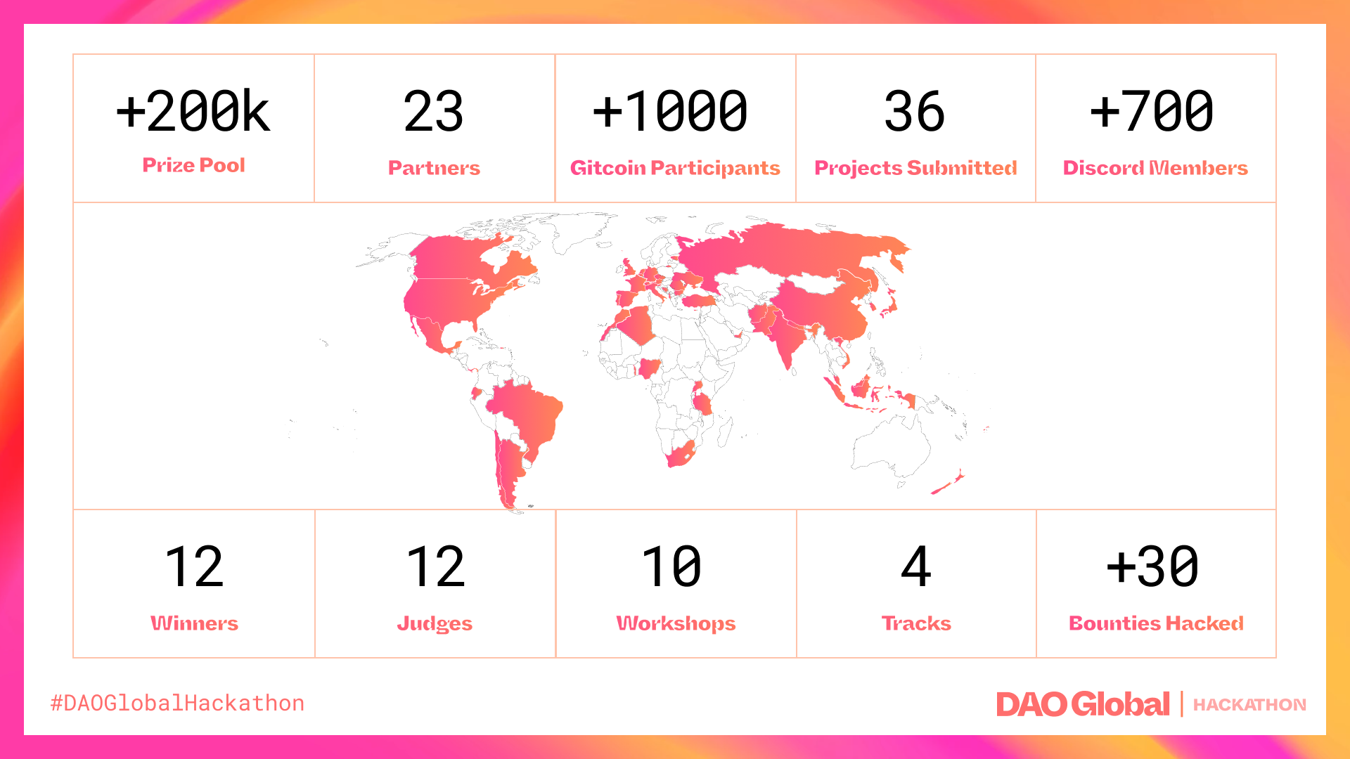 With over 1000 participants registered on Gitcoin, the DAO Global Hackathon was a compilation of talented people, ground-breaking ideas, and innovative projects.