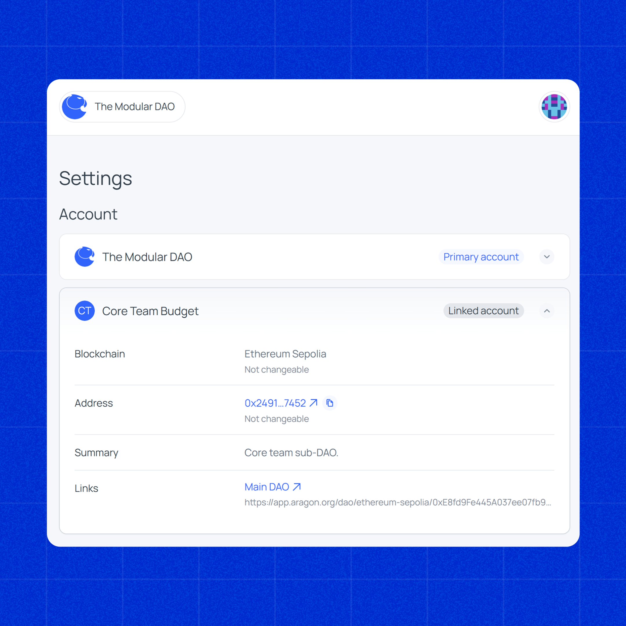Teams interested in setting up their onchain operations with Linked Accounts can reach out to the Aragon team for help configuring their system.