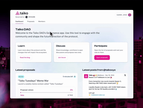 The Governance UI Kit and App Template power Polygon, Taiko, Mode, and Puffer’s innovative governance models. Aragon OSx makes it safe and easy to customize governance contracts, and our UI tools make it just as fast and simple to create bespoke interfaces for community participation. Now, they’re open for any designer or developer to build their own Governance Hub.