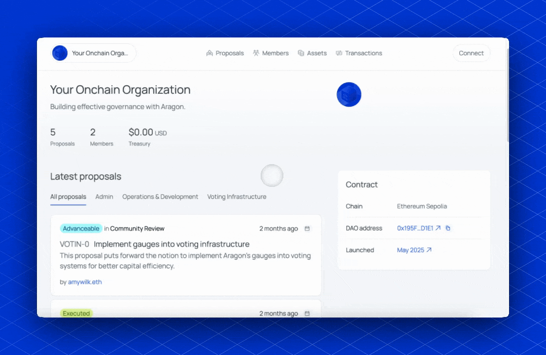 Whether you’re launching a new onchain organization or evolving an existing one, there’s never been a better time to build with Aragon. Get started today.