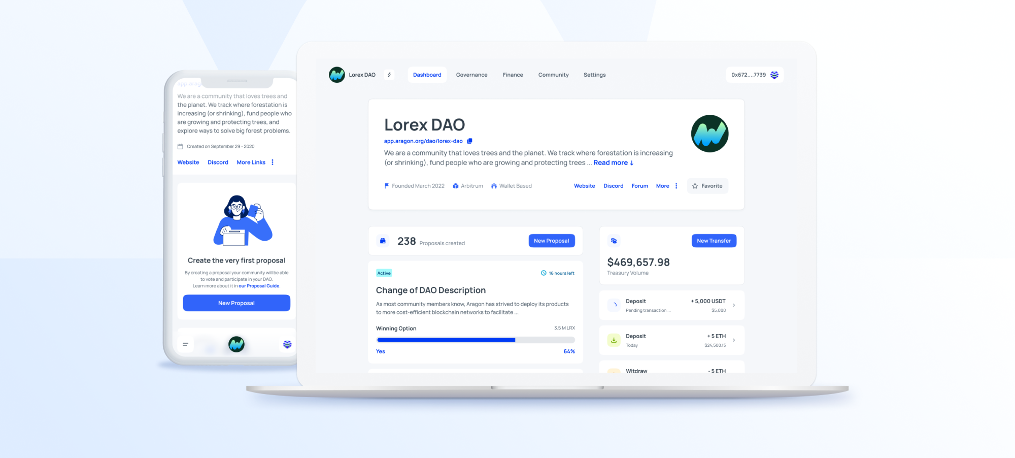 The reality is it’s still incredibly early in the DAO era. Where DAOs will disrupt and innovate, what kind of DAOs will spring up, and in which direction they will take the world are all open questions. The challenge is huge, but the potential is even greater. Fortunately, there is already an incredible ecosystem of tools and expertise enabling DAOs to have real-world impact, and by putting new foundations in place, we believe we can go further together. We’re excited to launch a new Aragon for the DAO-ified future and can’t wait to build it together with you!