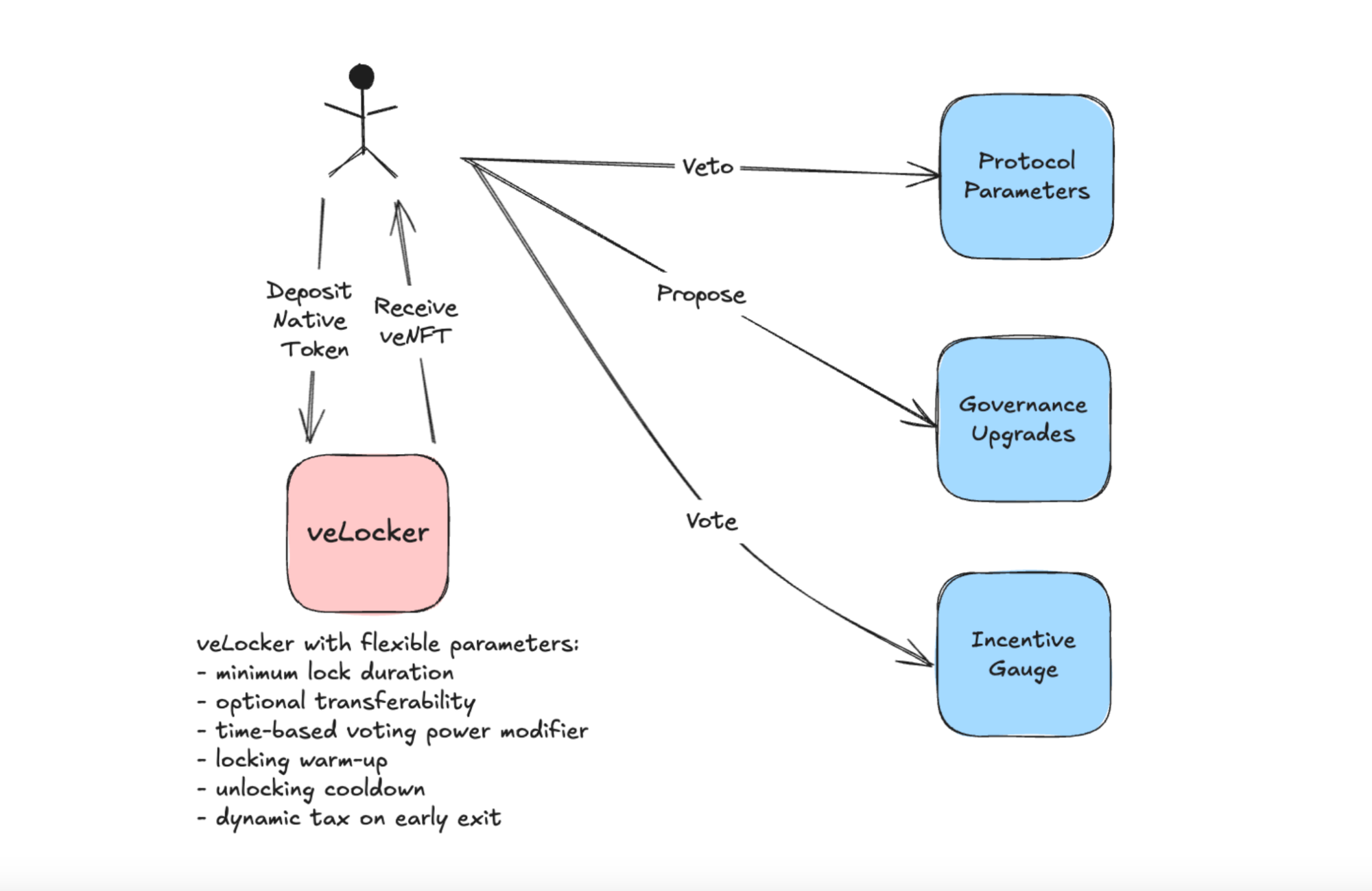 - Governance Integration: Compatible with various governance systems, including standalone implementations or integration with veLocker systems.